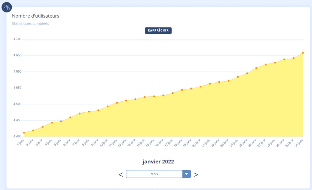 Vous pouvez voir son évolution par jour / semaine / mois / année dans l’onglet Statistiques.
