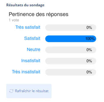 Au-delà des indicateurs quantitatifs, le meilleur moyen de savoir si votre chatbot est apprécié par vos utilisateurs est de mener une enquête de satisfaction. Quelques questions en fin de parcours sauront vous renseigner. Sur Botnation c’est très facile à implémenter grâce à nos fonctionnalités exclusives de sondages.