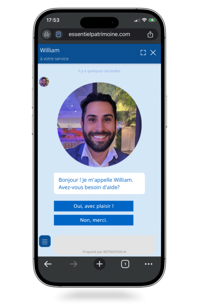 Essentiel Patrimoine a déployé un agent conversationnel Botnation, directement intégré à son site, pensé comme un outil d’accueil et de mise en confiance.